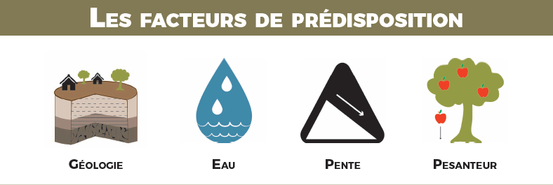 Trois facteurs conditionnent la probabilité de survenue des mouvements de terrain :