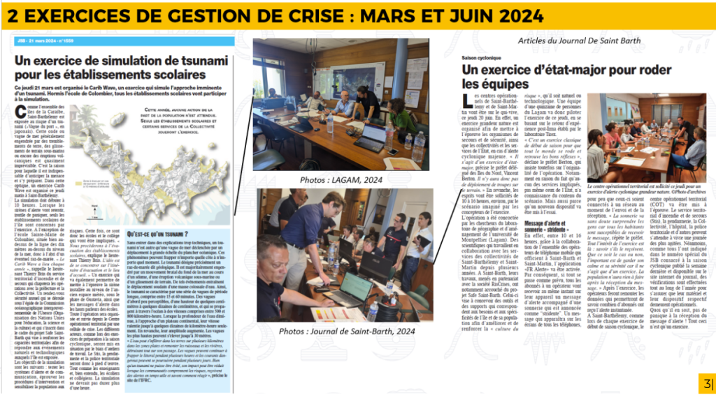 - Ateliers gestion de crise là l’occasion de l’exercice annuel Caribe Wave en mars 2025