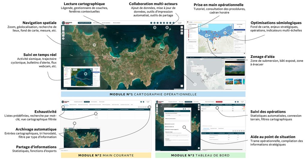 Découvrir la plateforme de gestion de crises Geocrisis. Conçue sur les technologies ArcGIS Online et ArcGIS Experience Builder, l’architecture s’organise autour de trois modules : une cartographie interactive et collaborative, une main courante cartographique semi-automatisée et un tableau de bord dynamique de synthèse.
